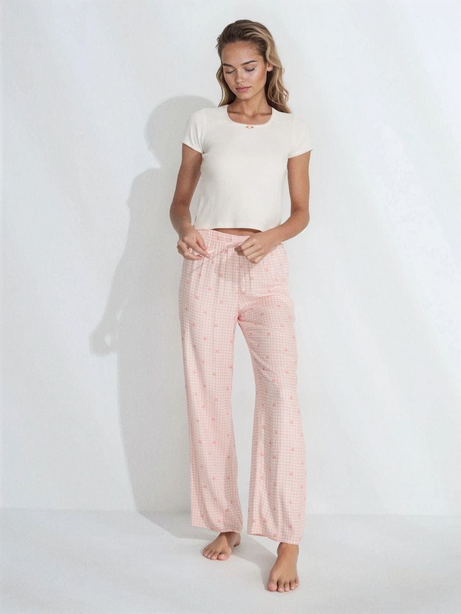 Dvodijelna pamučna pidžama s hlačama na kockice