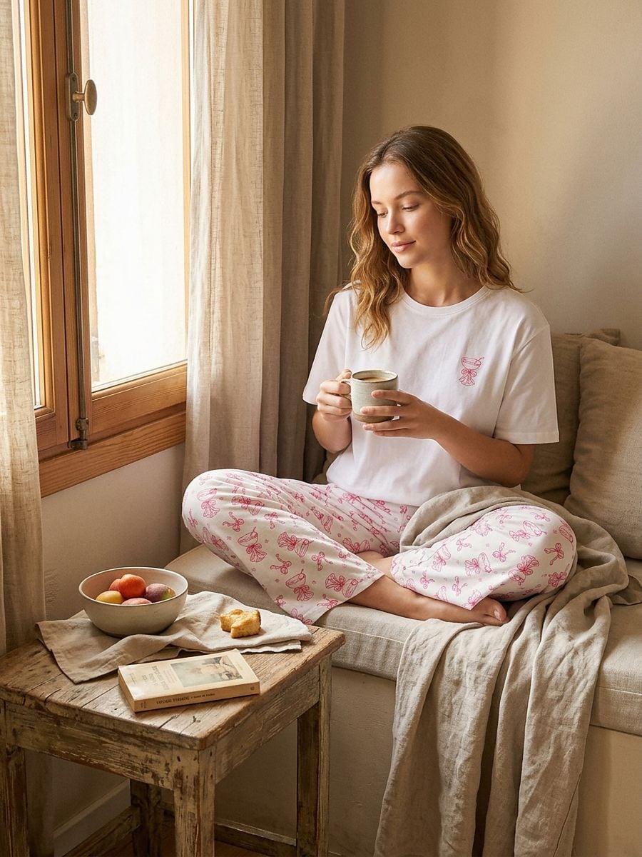 Dvodijelna pidžama s motivom mašnica i čaša