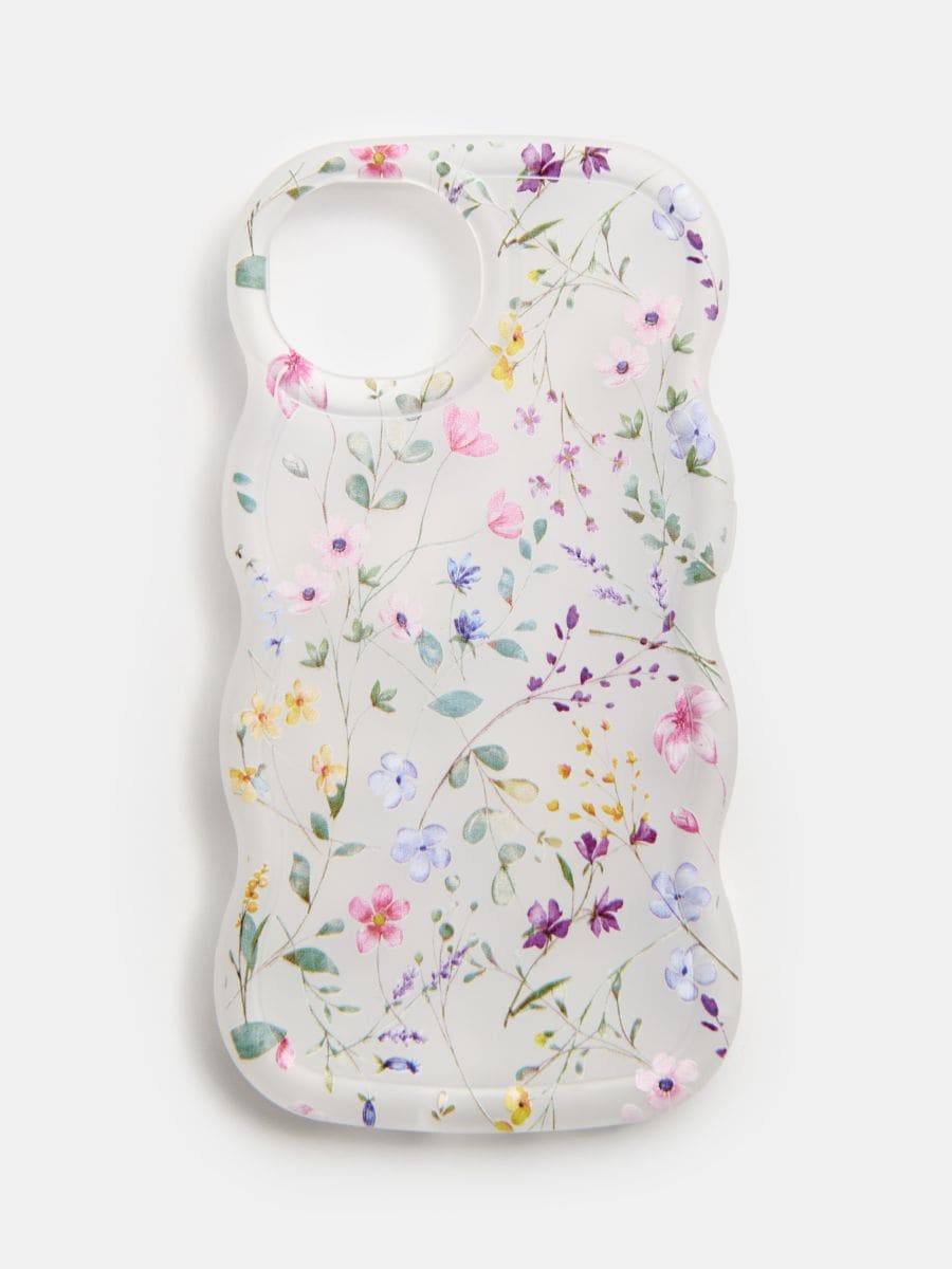 Maska za iPhone 15 s valovitim rubovima i cvjetnim motivom