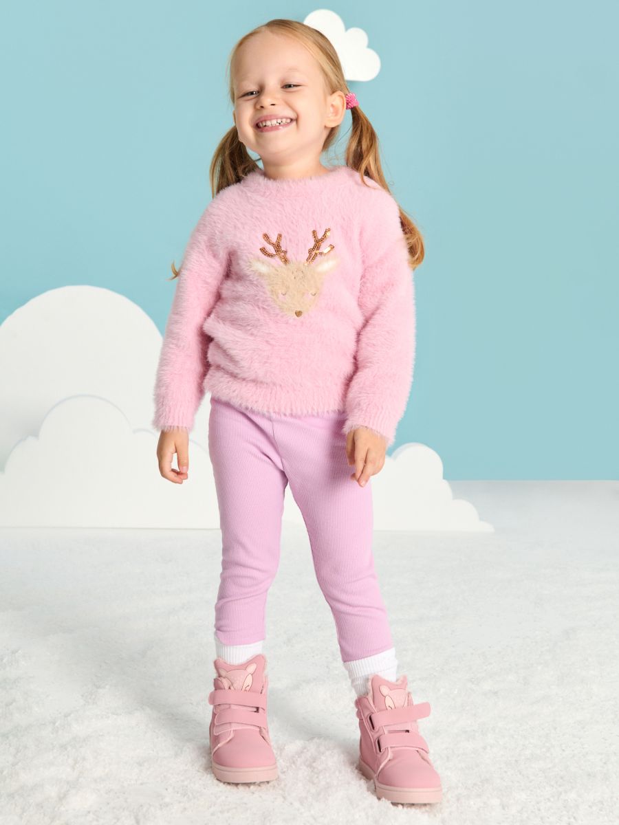 Pahuljasti džemper s aplikacijom irvasa i sjajnim šljokicama