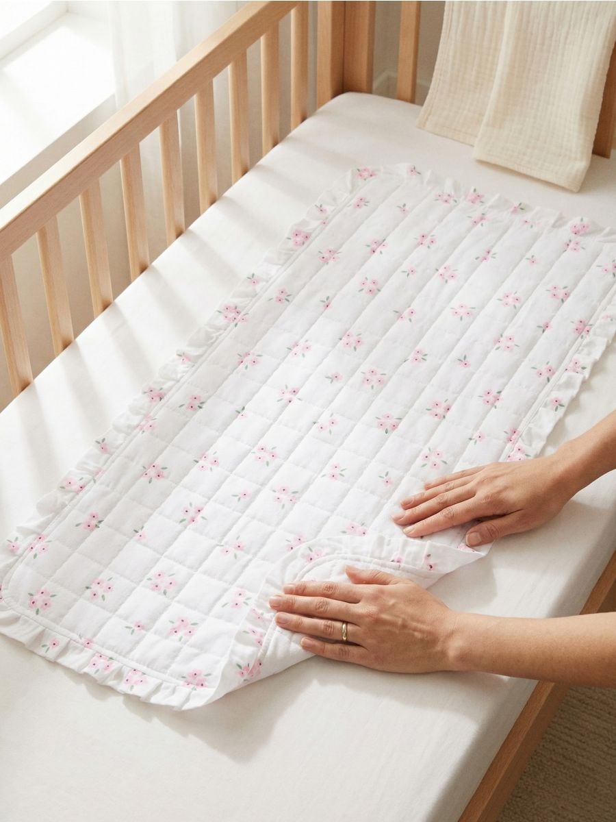 Prekrivač za dječji krevetić sa volanom i cvjetnim motivom