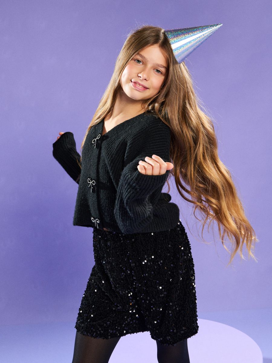 Rebrasti džemper sa dekorativnim kopčama u obliku mašni
