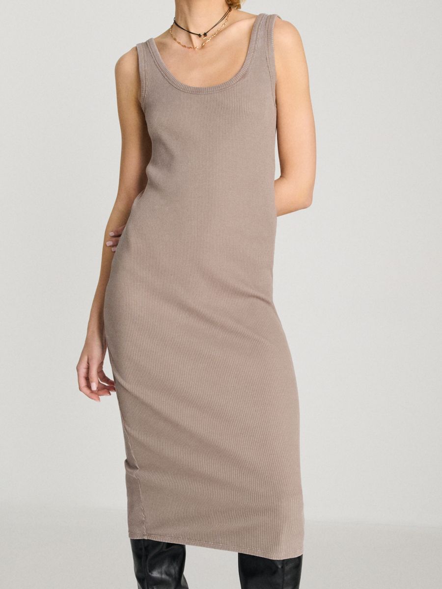 Uska pletena midi haljina sa efektom pranja