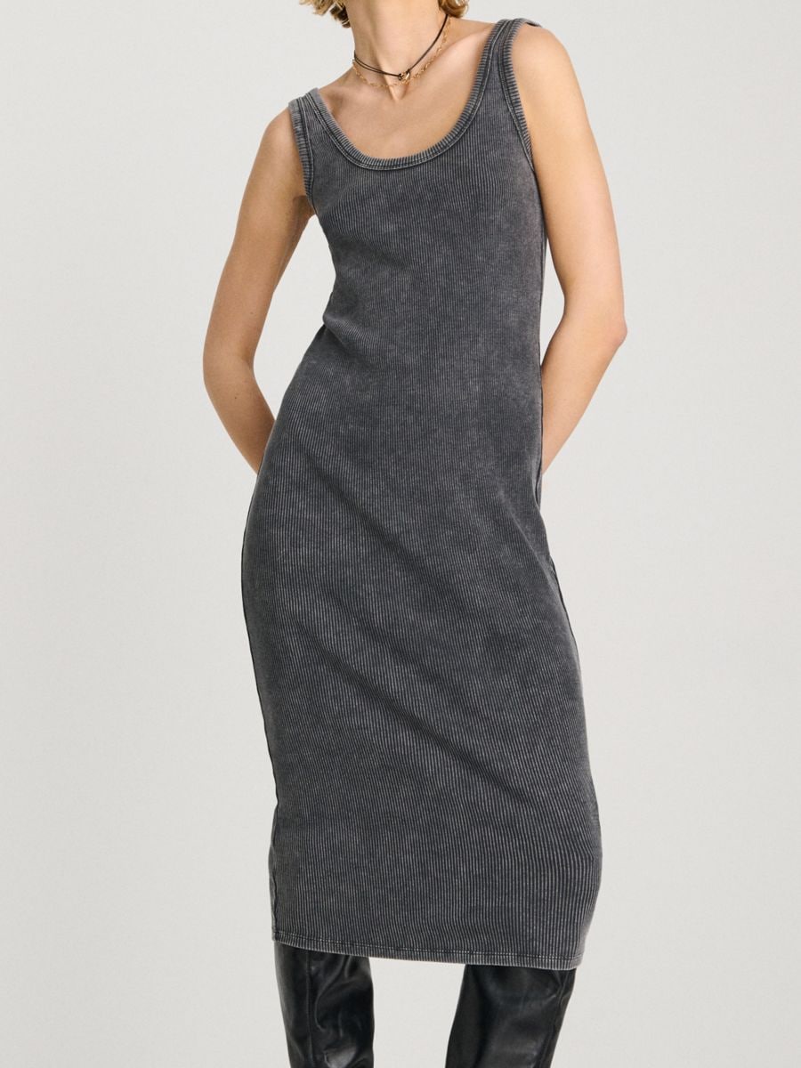 Uska pletena midi haljina sa efektom pranja