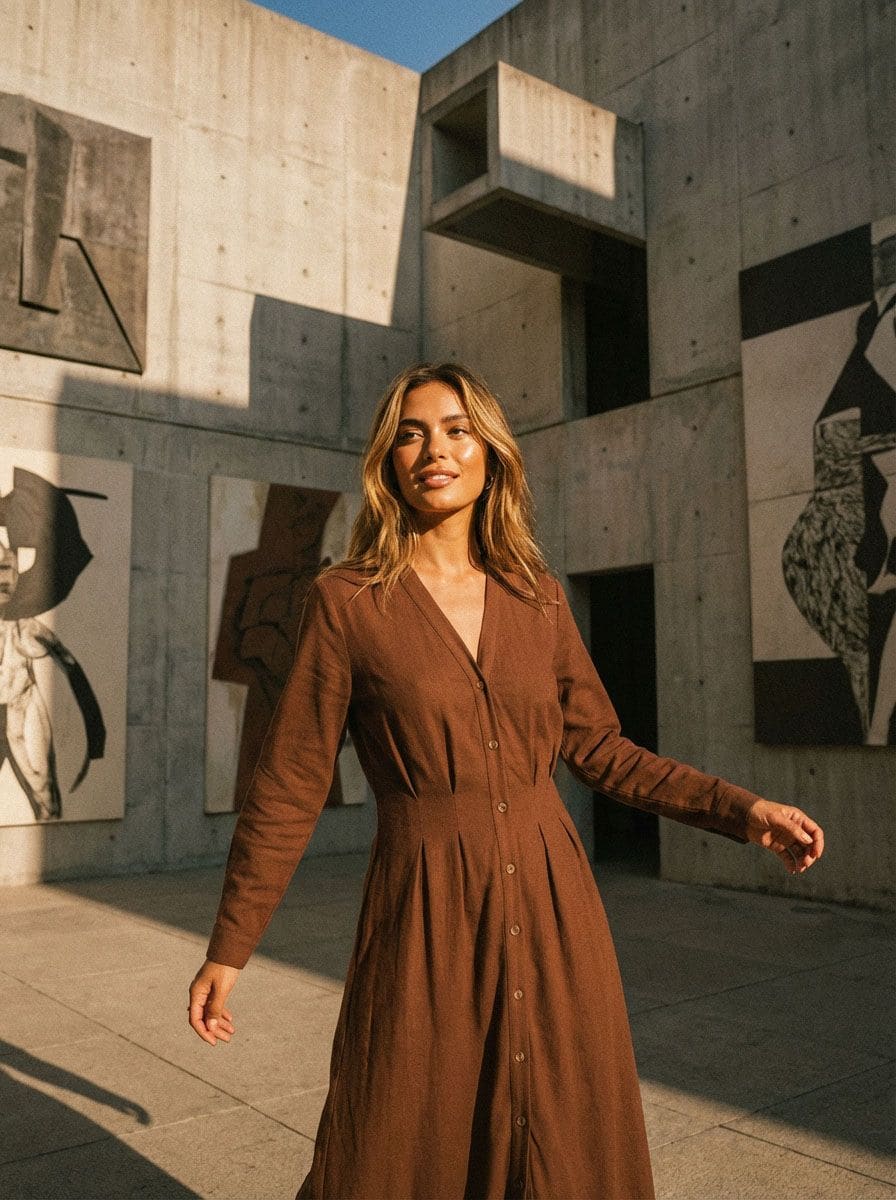 Viskozna košulja midi haljina s dodatkom lana
