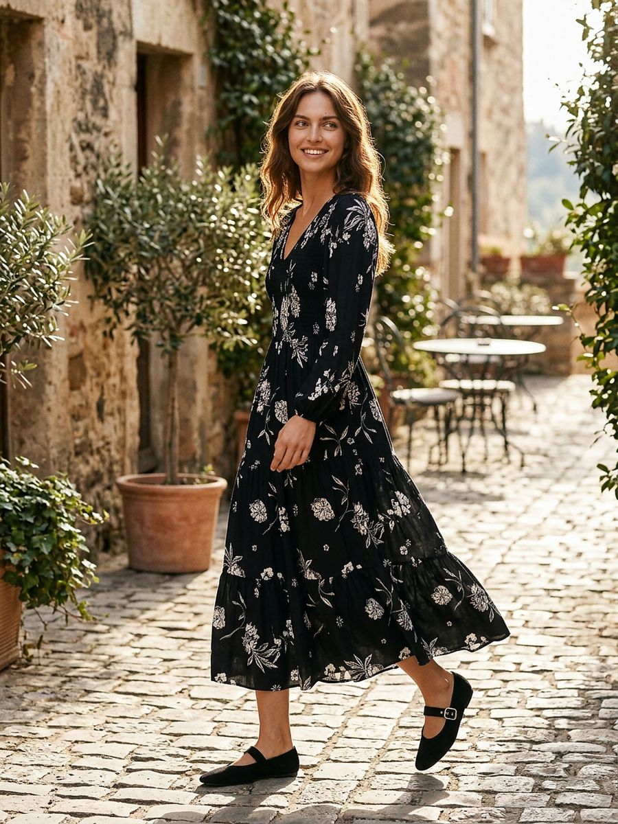 Viskozna midi haljina sa slojevitim efektom i cvjetnim uzorkom