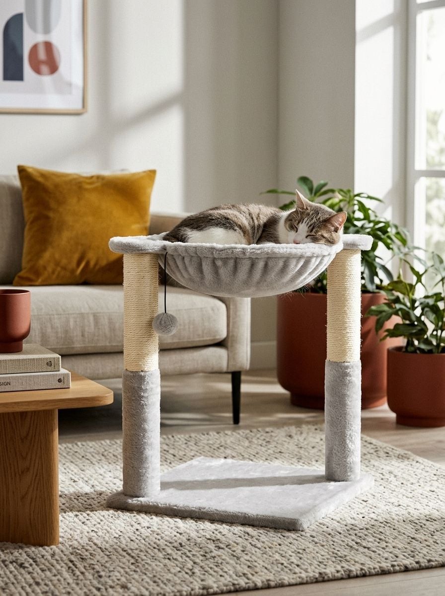 Драскало за котки с леговище и висяща играчка