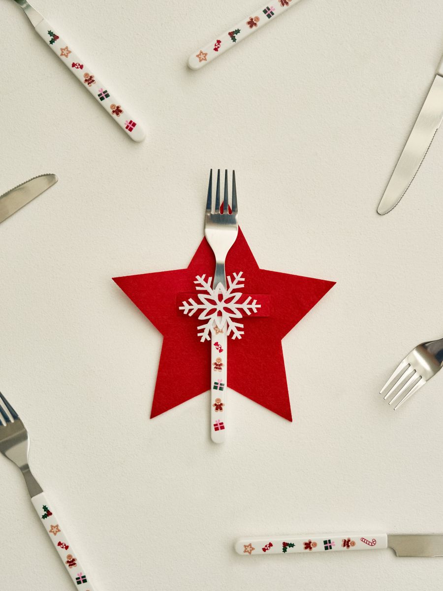 Комплект от 4 калъфа за прибори във формата на звезда с коледен мотив