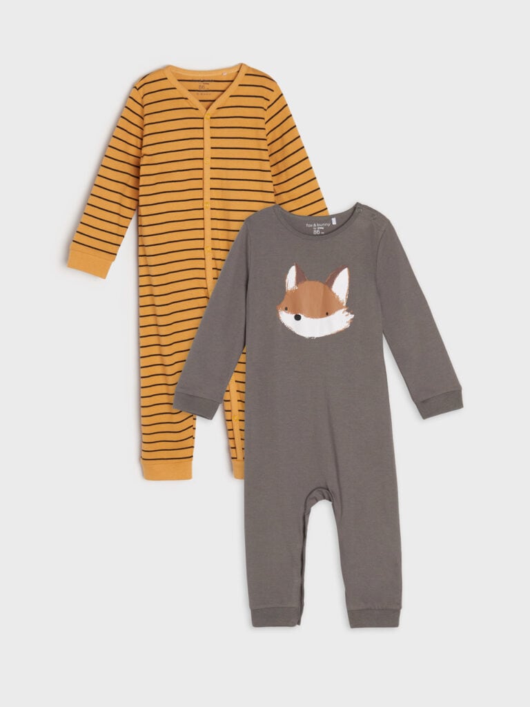 Țineți totuși minte, că în primele luni este destul de frecventă schimbarea combinezonului bebelușului pe timp de noapte. Seturile atractive de pijamale de la Sinsay, compuse din 2 și 3 bucăți vă vor permite să îl îmbrăcați pe micuț fără să vă depășiți bugetul. Designul colorat, dar plăcut atenuat, va face ca fotografiile de la jocurile de dimineață să fie cel mai mare hit în albumul de familie.