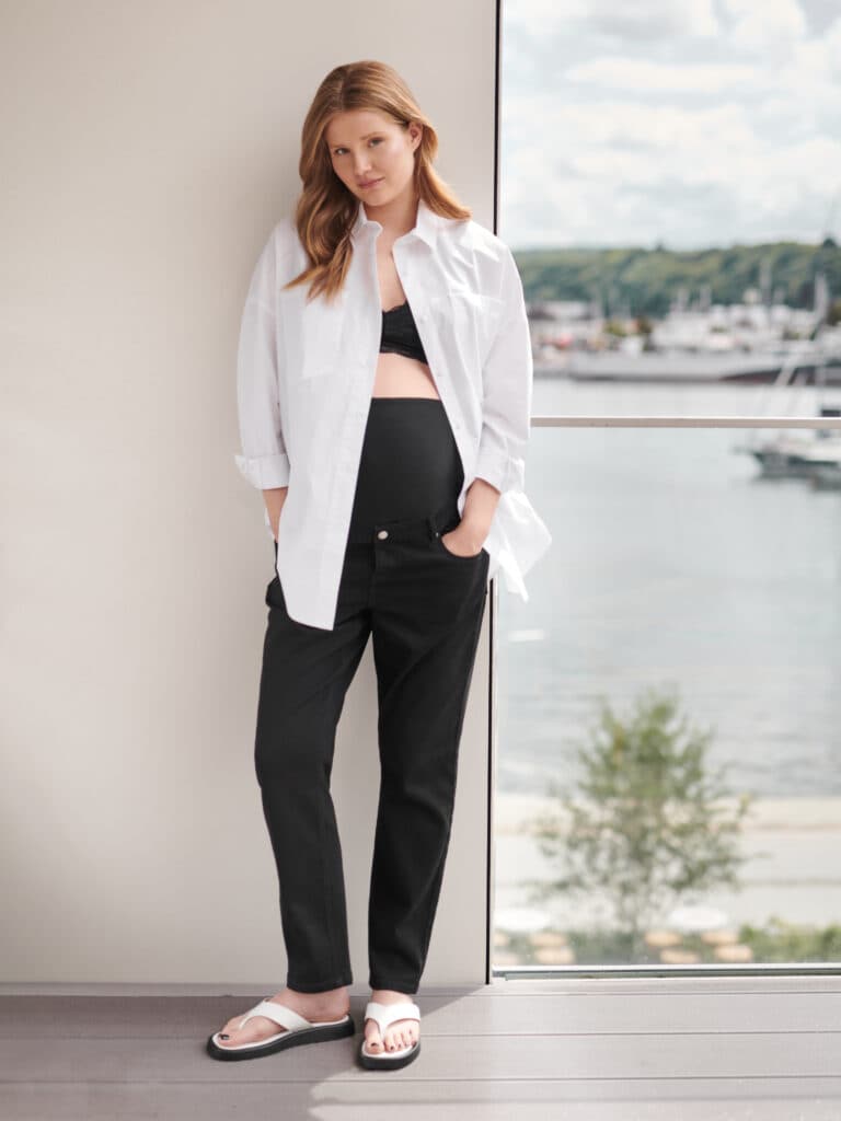 Un element important în completarea unei stilizări de maternitate este alegerea lenjeriei de corp. O atenție deosebită trebuie acordată sutienelor, care pot fi, de asemenea, folosite cu încredere ca element al stilului personal. Îmbinați blugii boyfriend pentru mame cu un top negru și aruncați pe umeri o cămașă albă clasică. Această combinație vă permite să faceți față provocărilor vieții cotidiene simțindu-vă în același timp relaxat și elegant.