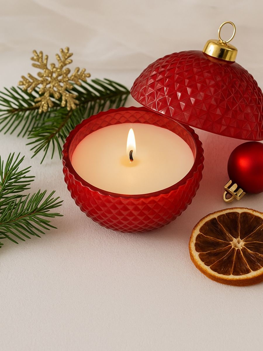 Kerze in Form einer Weihnachtskugel mit Duft Bourbon by the Fire