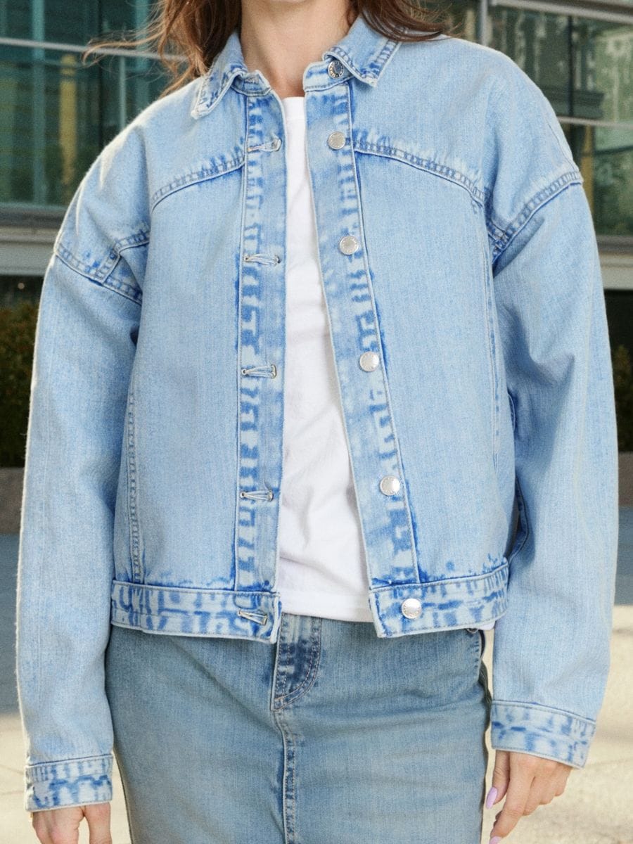 Kurze Jeansjacke mit dekorativen Strasssteinen