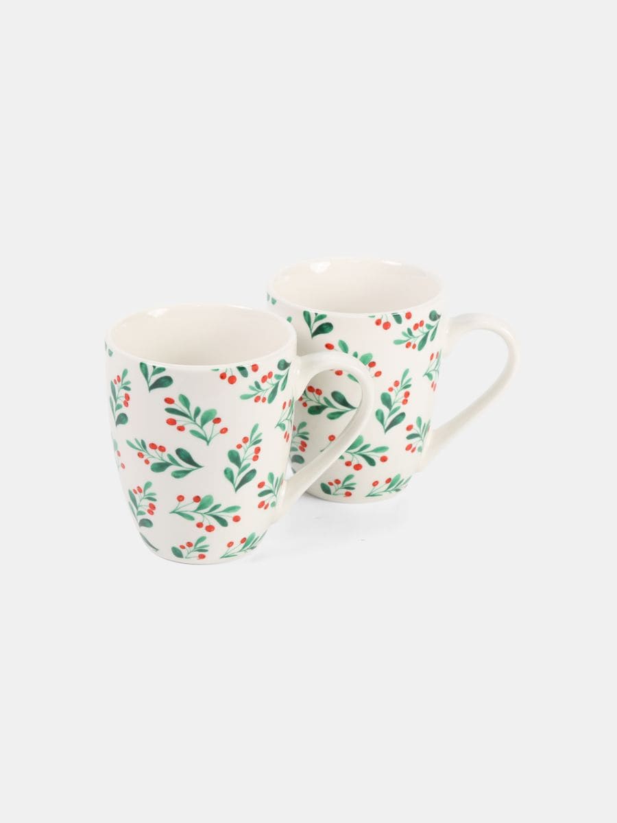 Weihnachtliche Keramiktassen mit Zweigmuster, 2er-Set