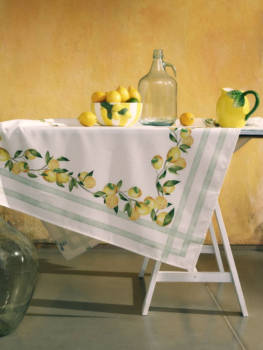Galda sega ar citronu rakstu