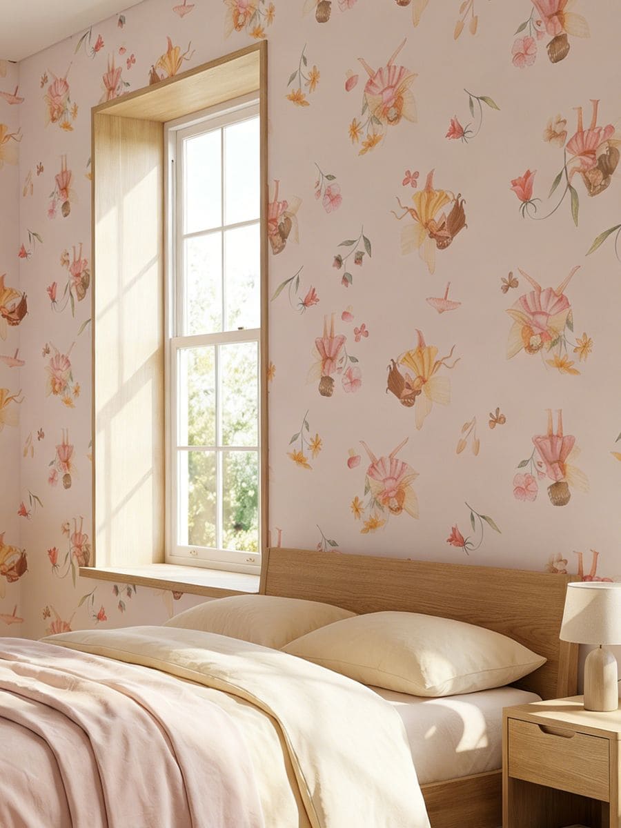 Isekleepuv tapeet haldjate ja lillede motiiviga
