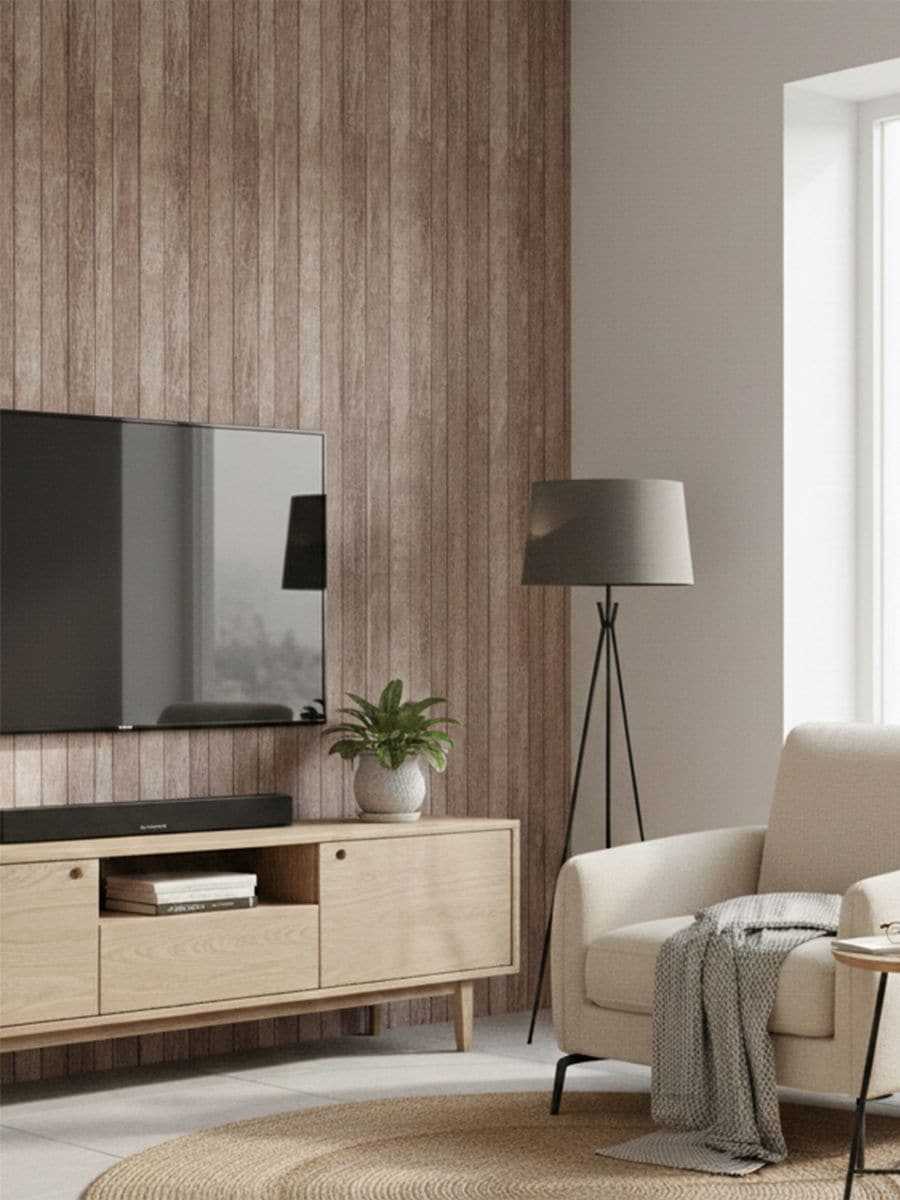 Isekleepuv tapeet puidumotiiviga