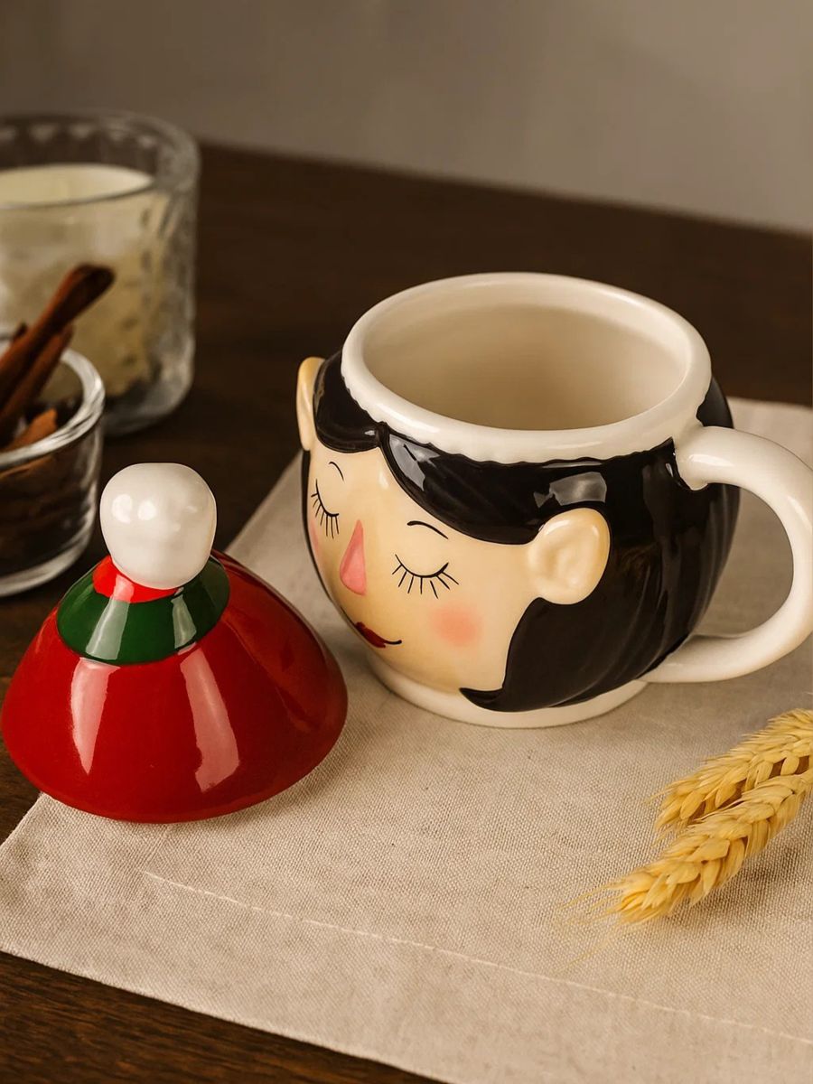 Jõulude dolomiidist tass kaanega, mis on haldja pea kujuline