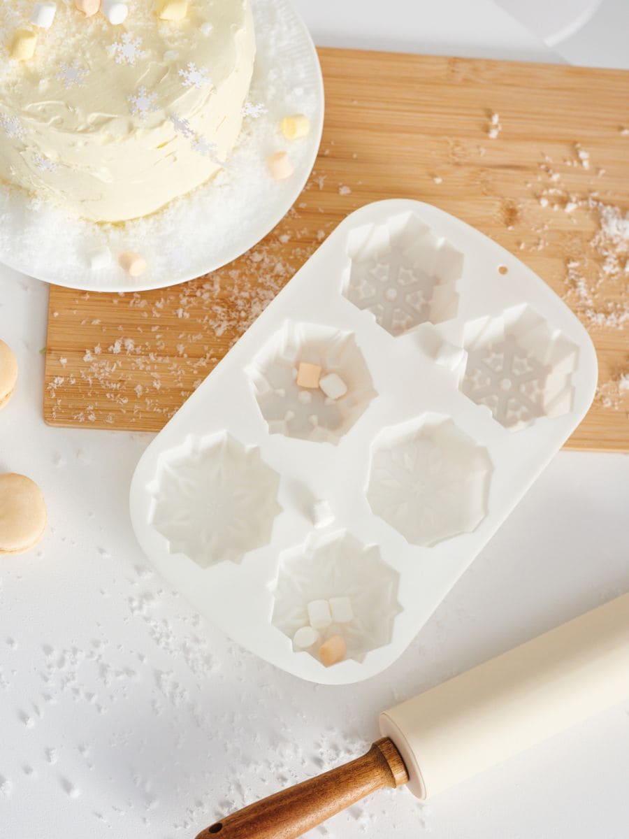 Jõulusilikoonist küpsetusvorm lumehelbekeste kujuliste muffinide jaoks