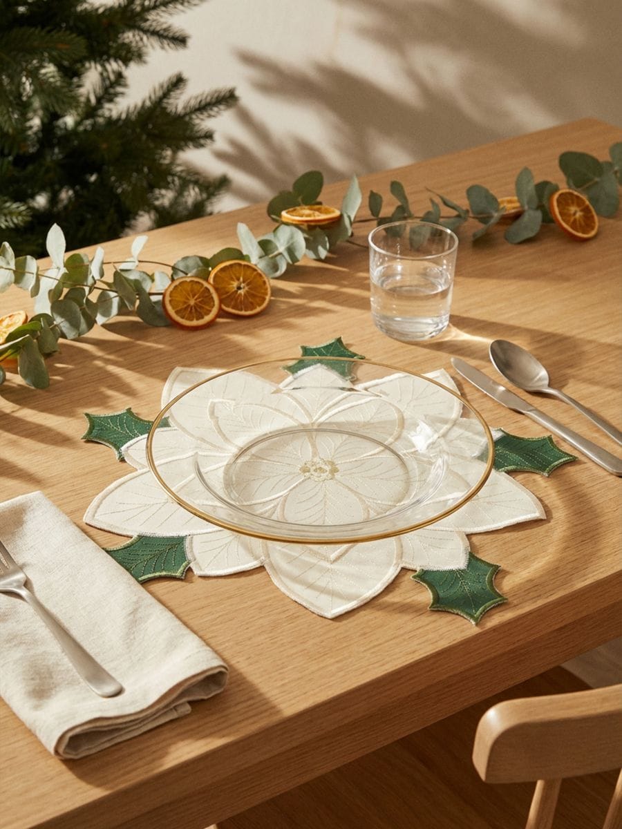 Jõuluteemaline lillekujuline lauamatt