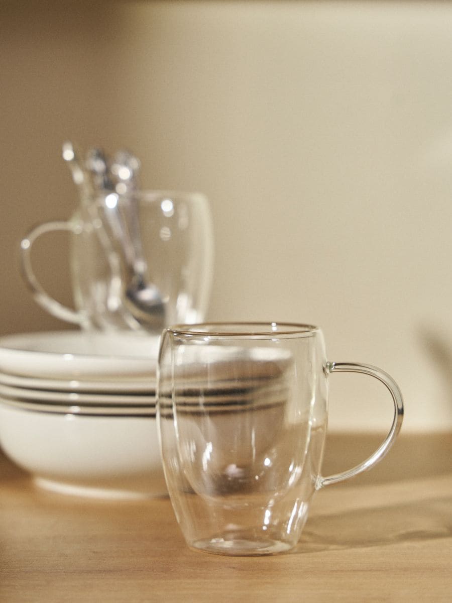 Kahekordse põhjaga klaastassid 2-pakis