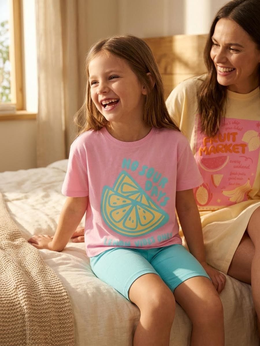 Kaheosaline puuvillane pidžaama sidruniprindiga