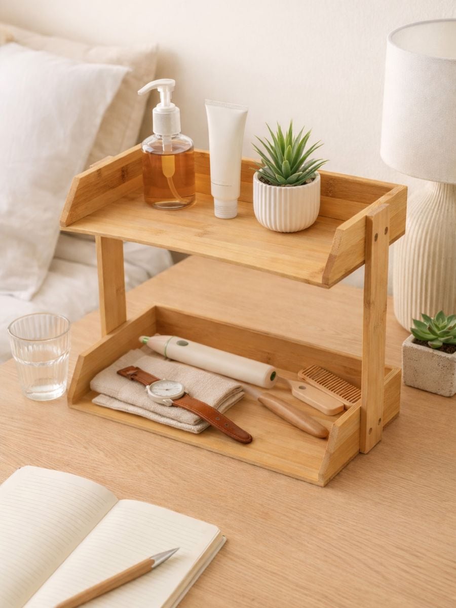 Kahetasandiline bambusest riiul
