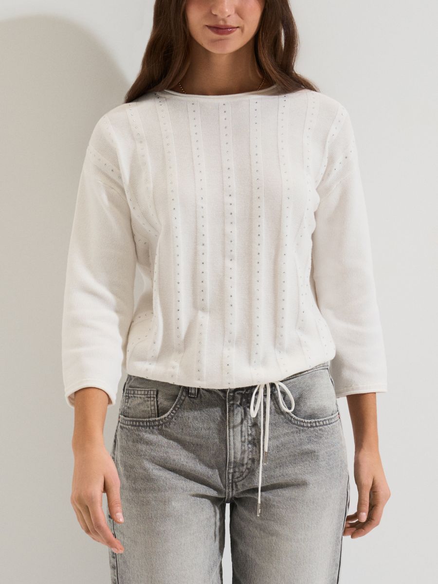 Kampsun kivikeste ja sidumisdetailiga