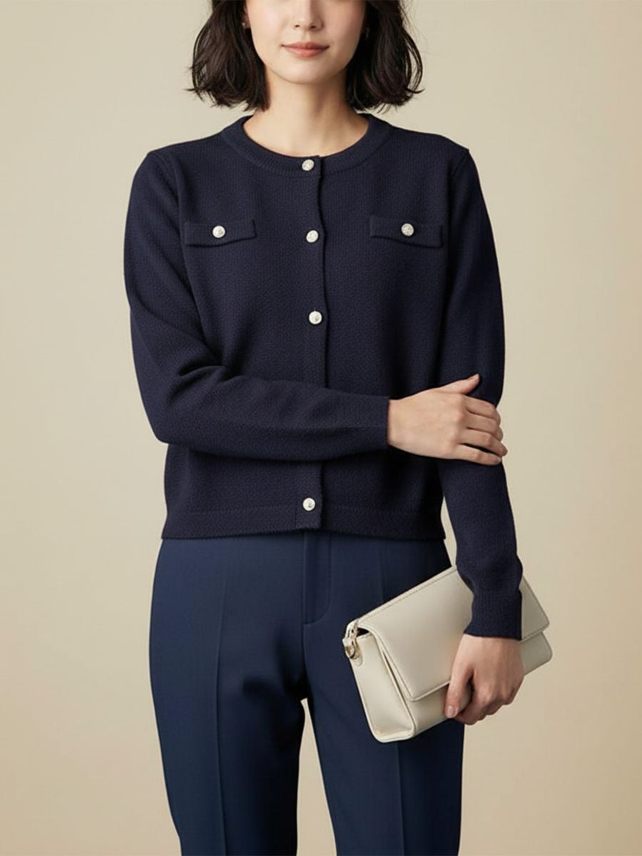 Kardigan Dekoratiivsete Nööpide ja Taskutega