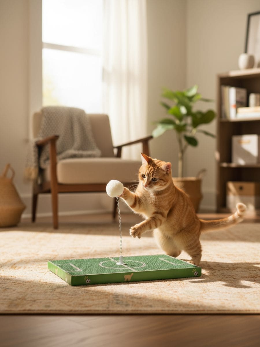 Kasside kraapimisalus jalgpalliväljaku kujuga ja palliga