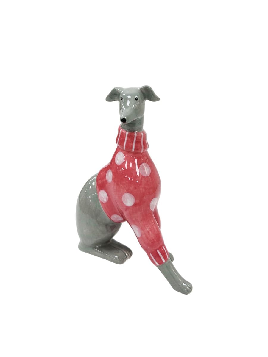 Keraamiline dekoratiivne seisev koerakujuke kampsuniga