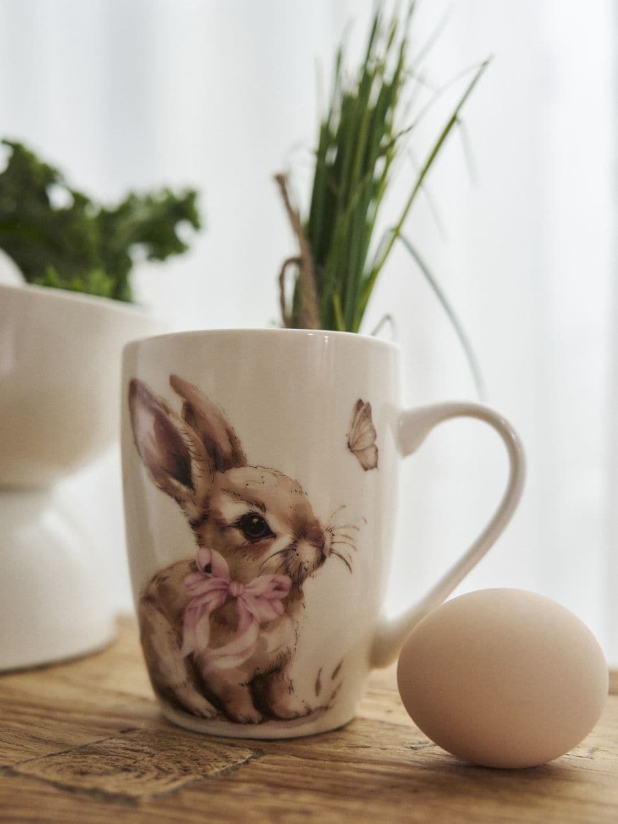 Keraamiline tass jänesekujutisega
