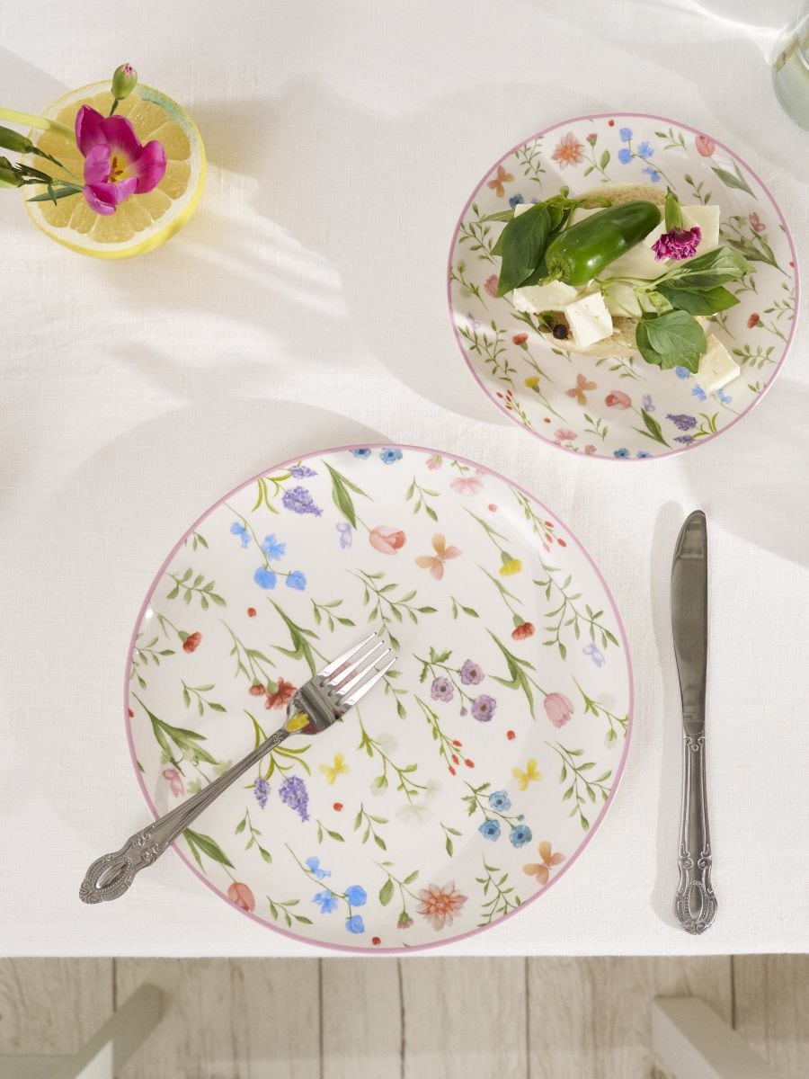Keraamiliste taldrikute komplekt lillemustriga 2 tk