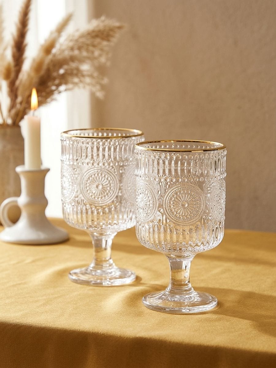 Klaaside komplekt reljeefse mustri ja kuldse äärega 2 pack