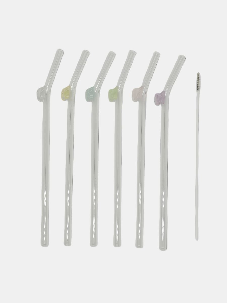 Klaasist joogikõrte komplekt puhastusharjaga 7 pack
