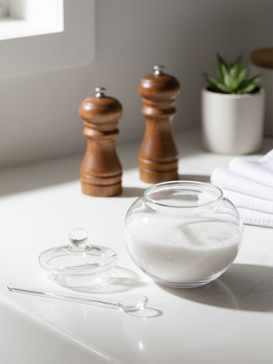 Klaasist suhkrutoos lusika ja kaanega