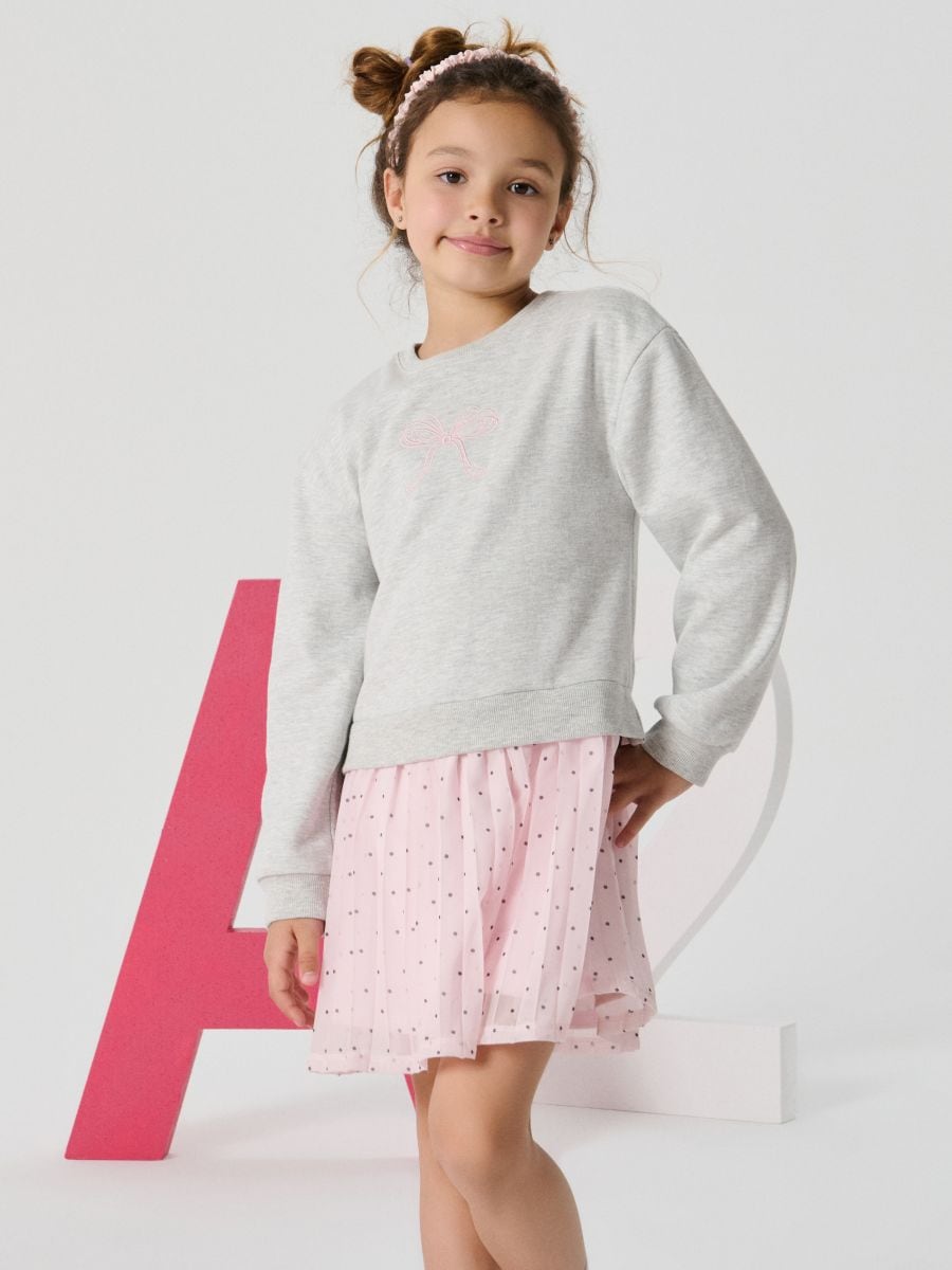 Kleit dressipluusi ülaosaga ja tüllseelikuga