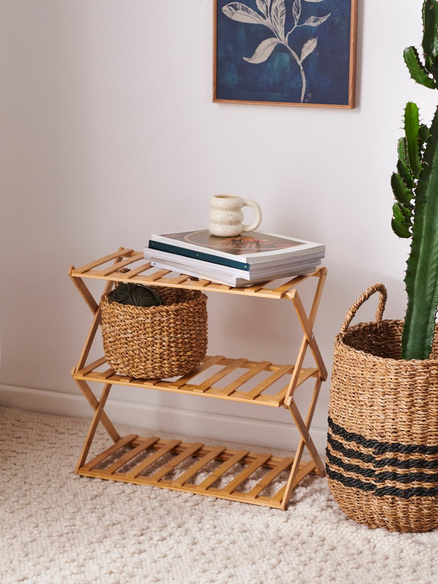 Kolmetasandiline bambusest riiul