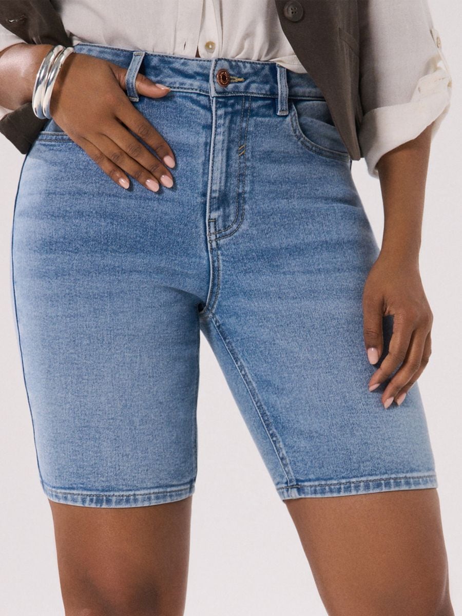 Kõrge vöökohaga lühikesed teksapüksid