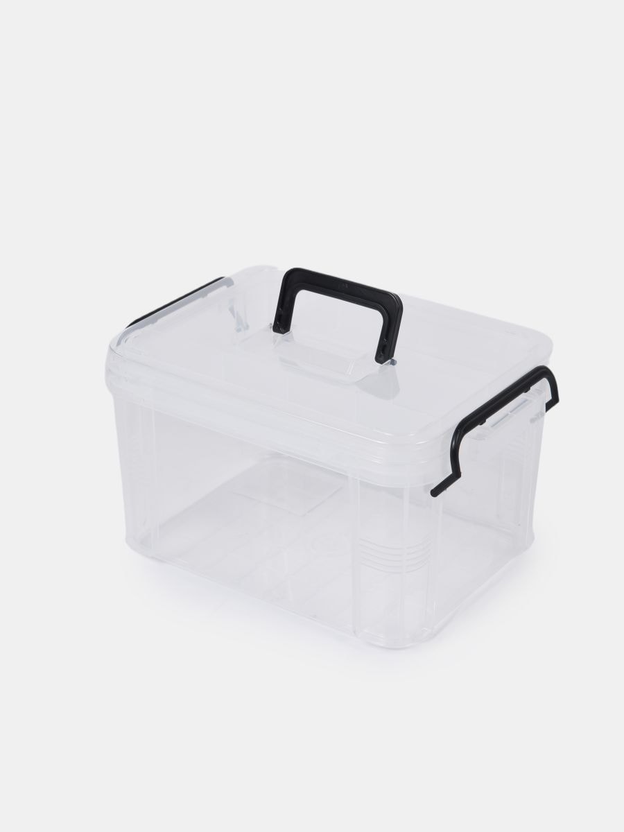 Läbipaistev hoiukast kaane ja käepidemetega