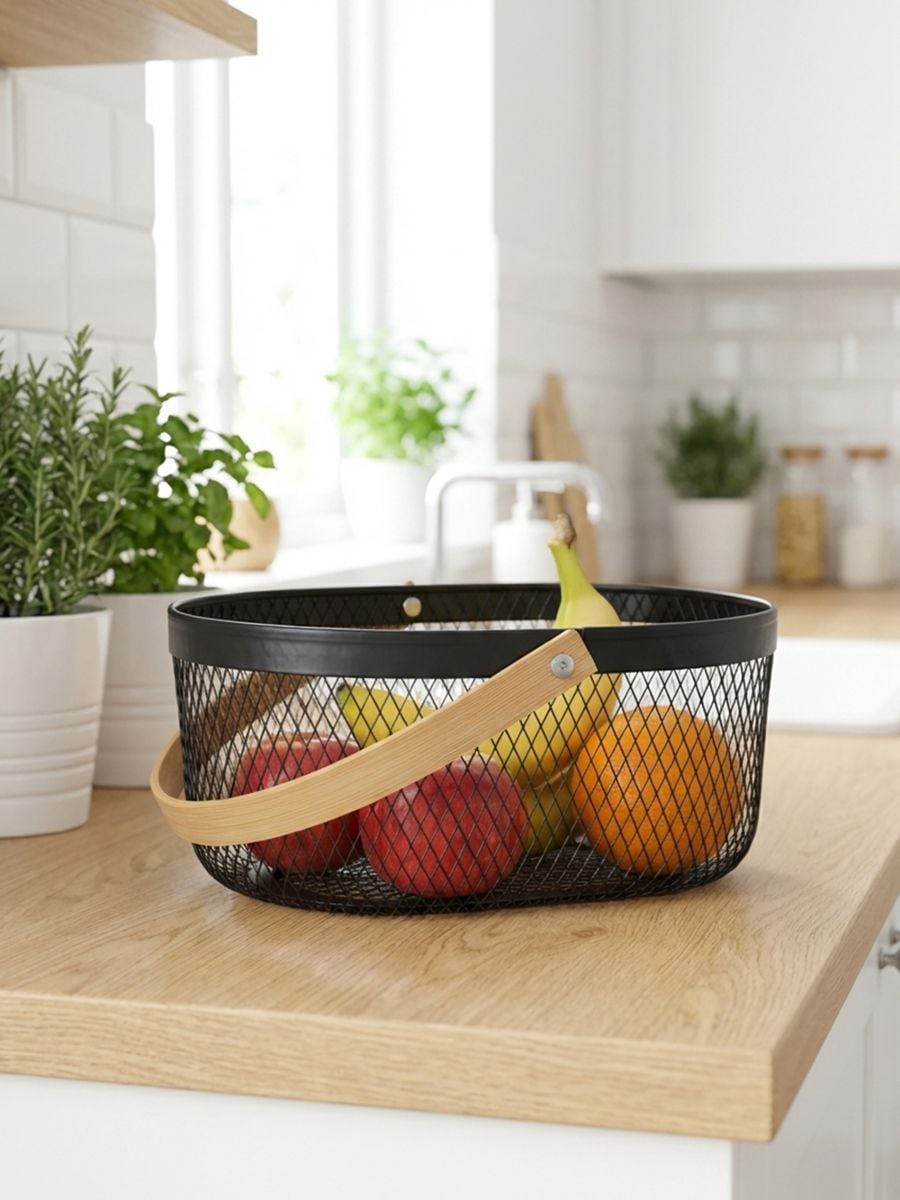 Metallist toidukorv bambusest käepidemega