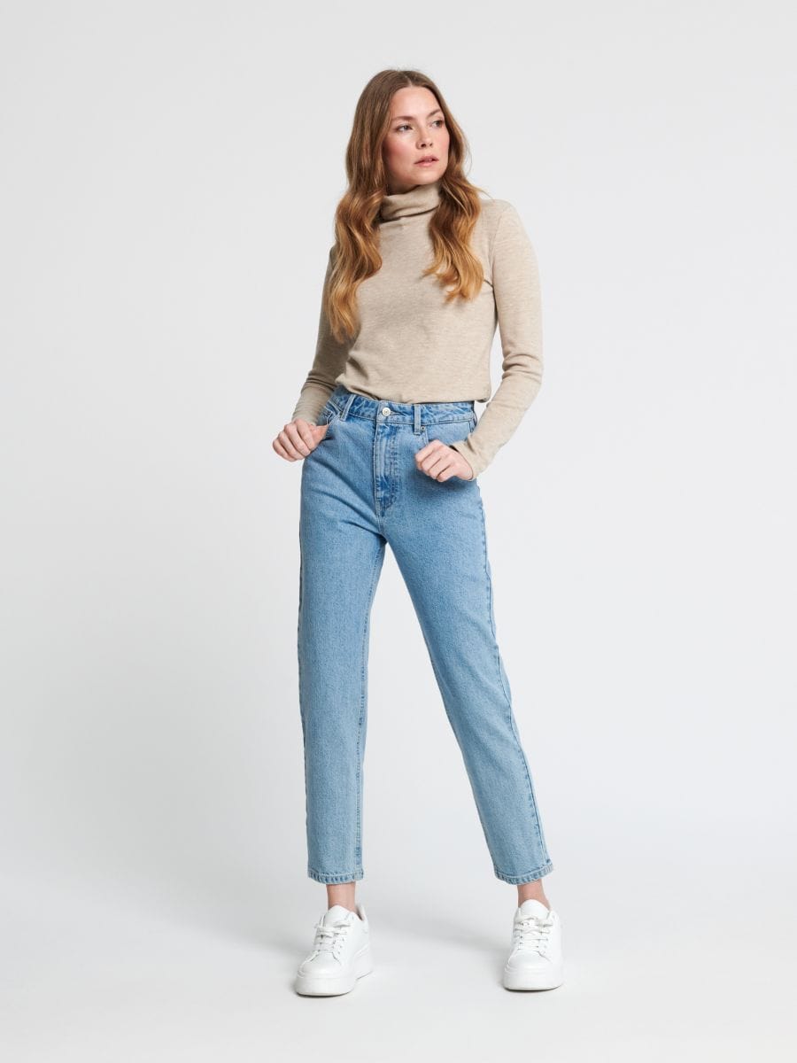 Pikkade varrukate ja kõrge kaelusega T-särk