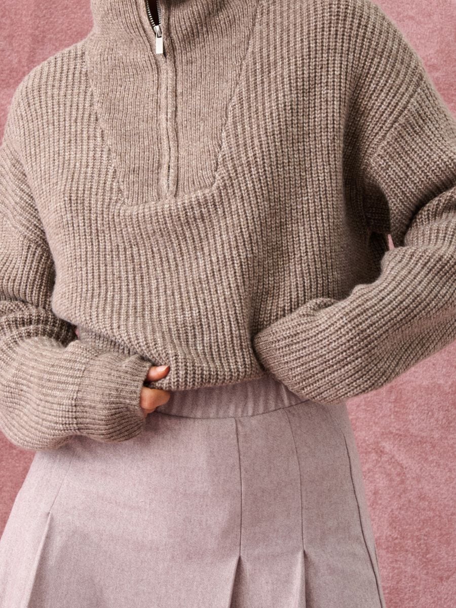 Poollukuga kampsun villaseguga