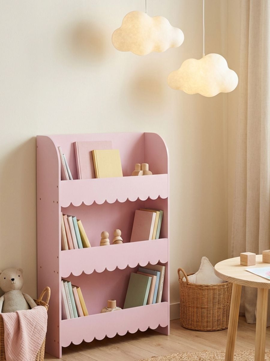 Põrandal seisev 3 tasandiga riiul lainelise servaga