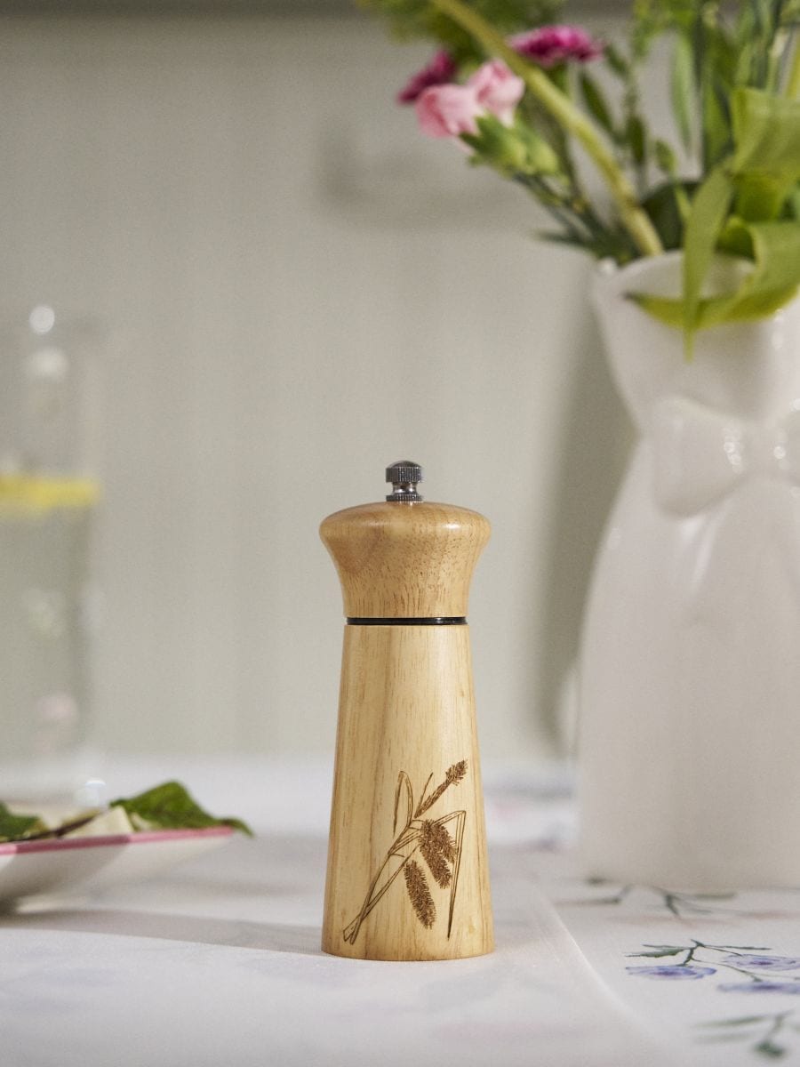 Puidust vürtsiveski taimse graveeringuga