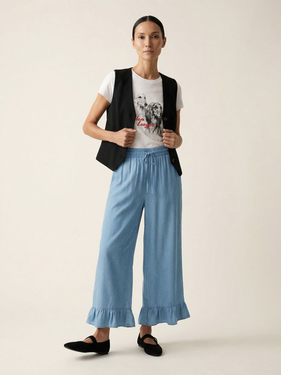 Püksid satside ja taskutega lüotsellist