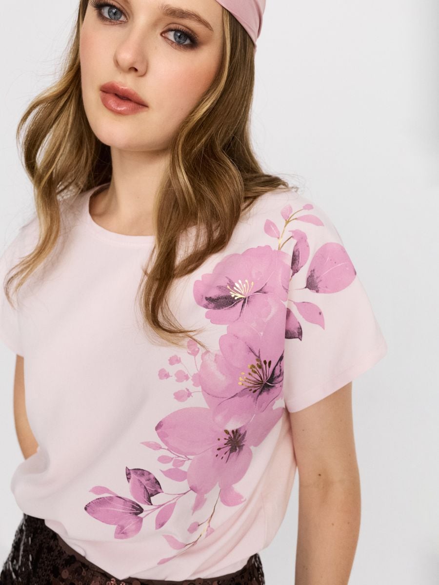 Puuvillane lühikeste varrukatega T-särk lillemotiiviga