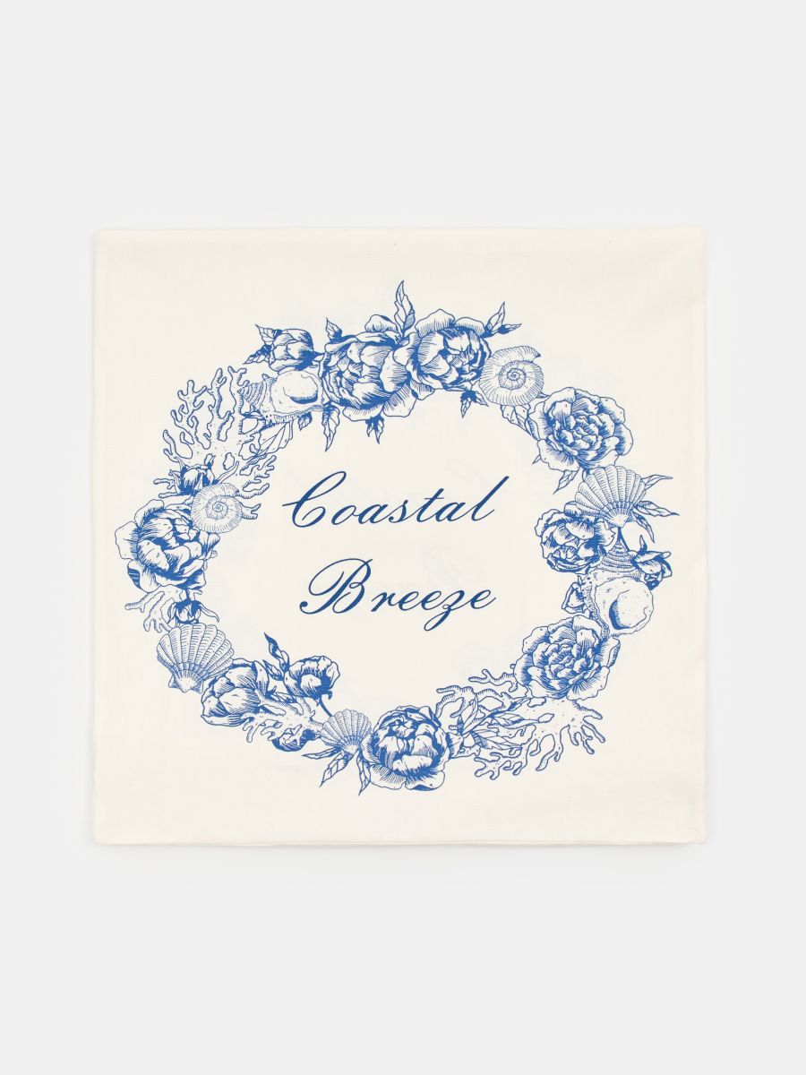 Puuvillane padjapüür merelise motiivi ja tekstiga Coastal Breeze