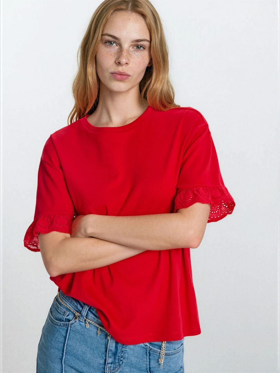 Puuvillane pluus pitsdetailidega