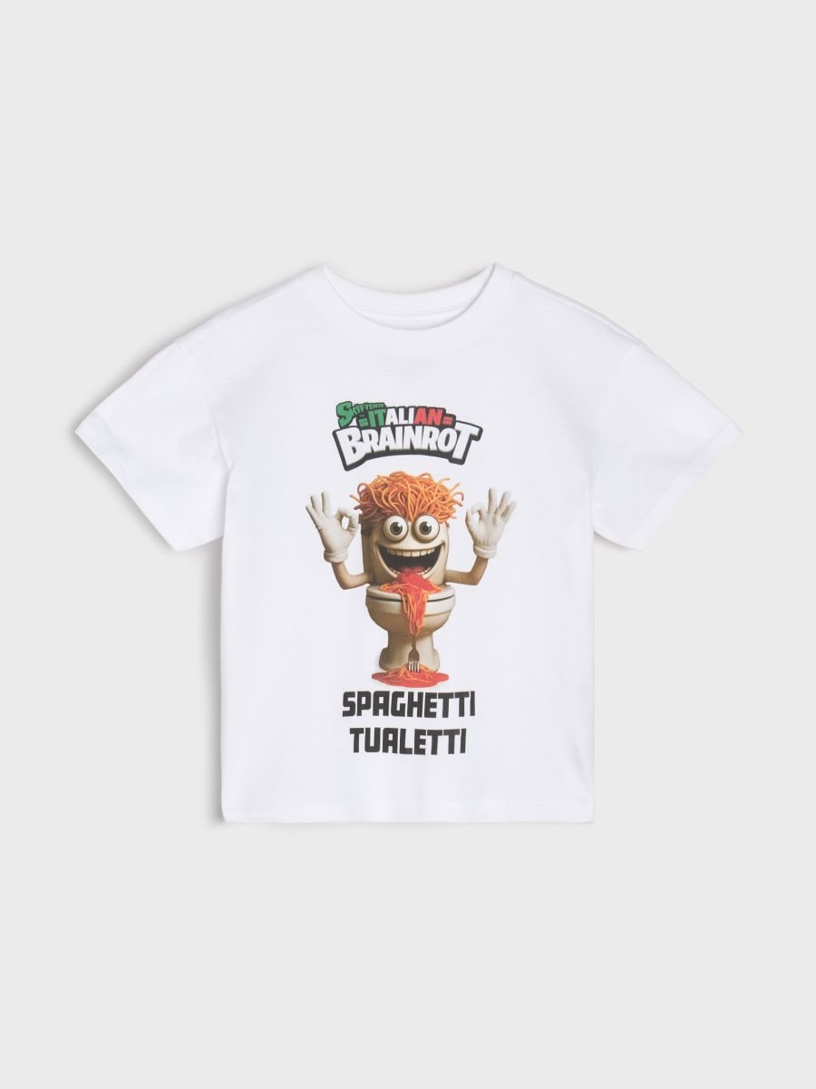 Puuvillane t-särk pildiga Italian Brainrot Spaghetti Tualetti