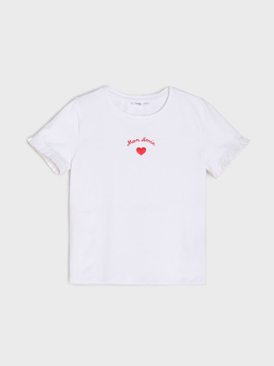 Puuvillane T-särk tikandi ja volangiga